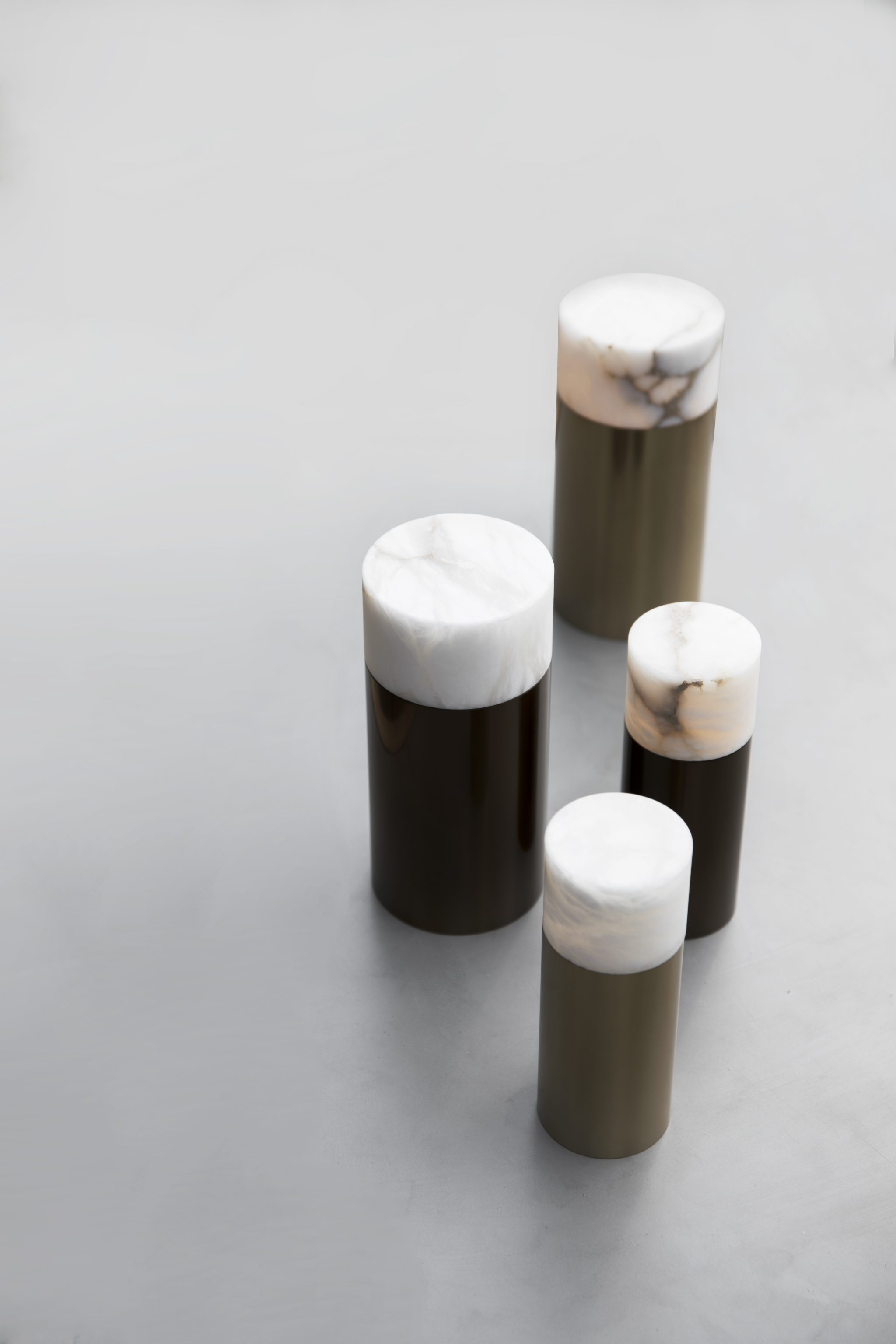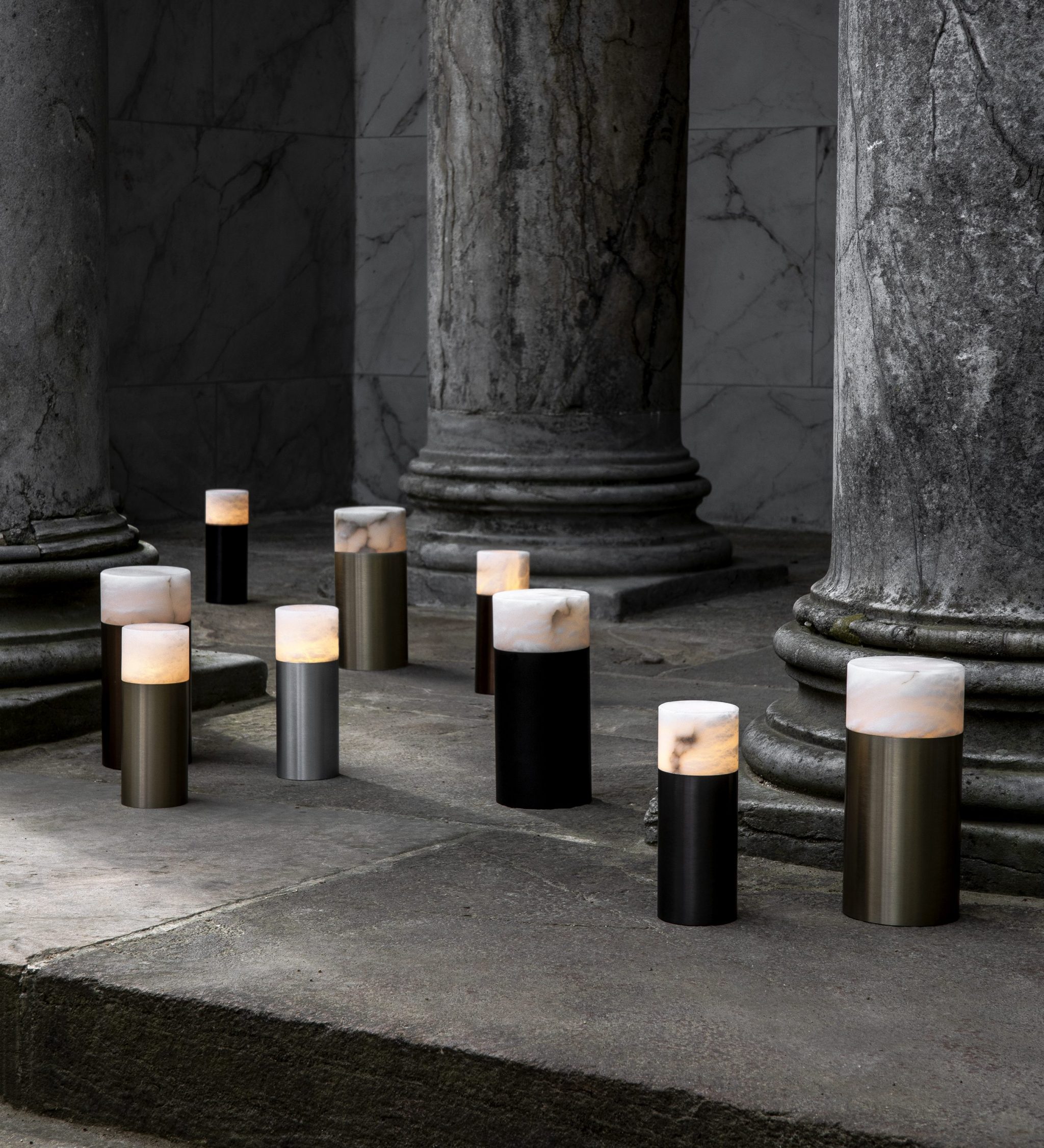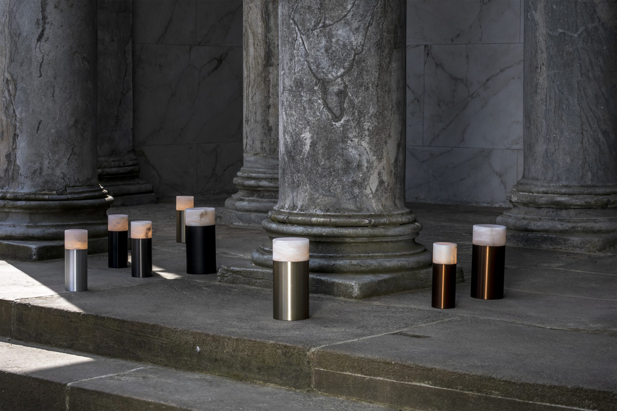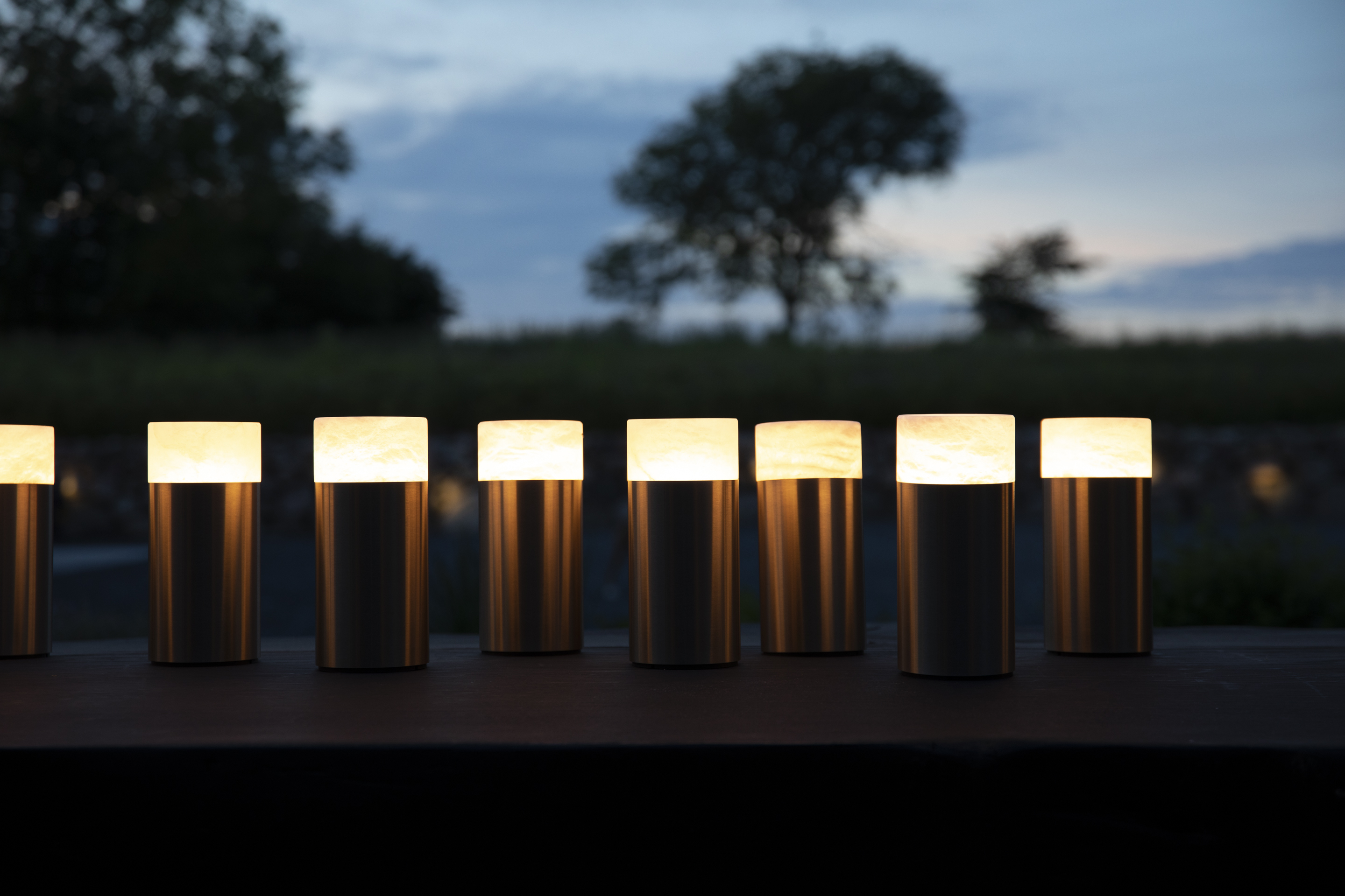 Ein sanftes Licht durchdringt den Alabasterstein und schafft eine Atmosphäre wie bei einer brennenden Kerze, jedoch ohne Brandgefahr oder das Verlöschen des Lichts. Unsere kabellosen Lampen sind mit einem Dimmer ausgestattet – diskret unter dem Fuß verborgen. Dort findet sich ebenfalls eine kleine Anzeige, die den Ladestand anzeigt. Der minimalistische Sockel aus eloxiertem Aluminium ist in Gold, Silber, Bronze und Schwarz erhältlich.