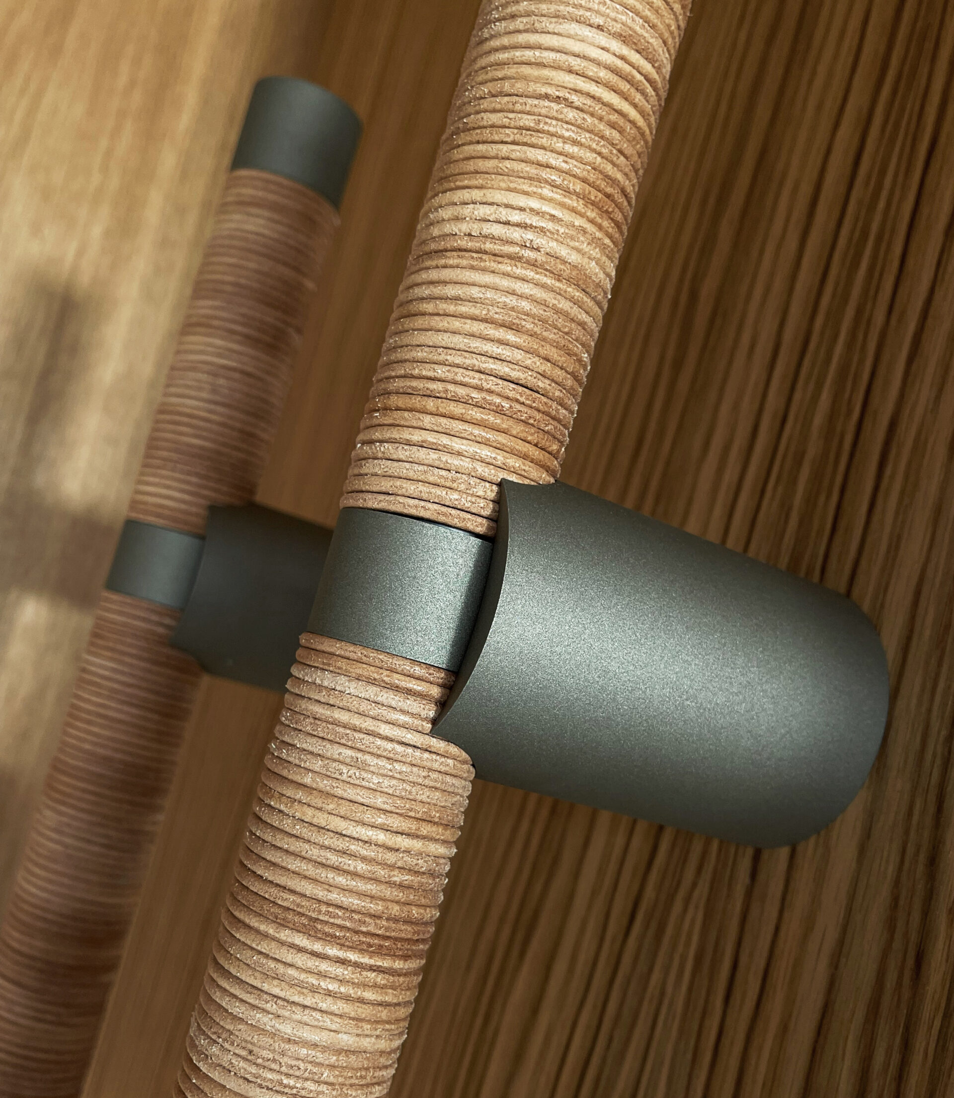 Die LW L Lampe bietet vielfältige Anpassungsmöglichkeiten mit einer breiten Auswahl an Farbvarianten für den Aluminiumzylinder sowie die Lederverkleidung.