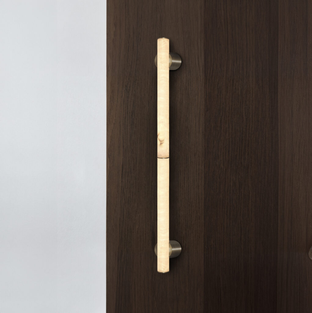 Die AW-Serie zeichnet sich durch den besonders schlanken Alabaster-Tubus aus. Während des gesamten Designprozesses haben wir mit dieser Stärke experimentiert. Der Tubus wurde fein poliert, wodurch eine seidige, weiche Oberfläche entsteht, die die einzigartige Marmorstruktur des Natursteins unterstreicht.