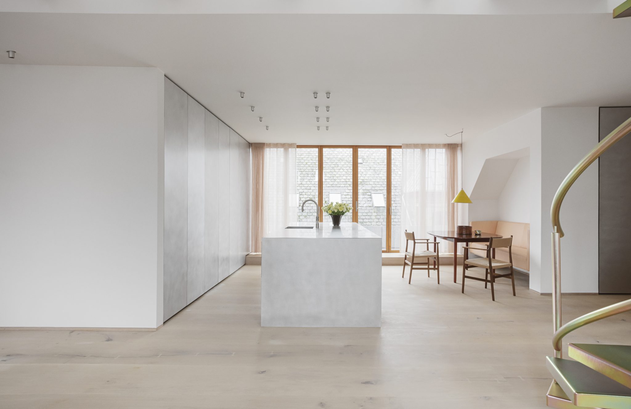 Die gezeigten Aufnahmen stammen aus einer frisch renovierten Dachgeschoss-Whg (Jahrgang 1890), welche sich in Vester Voldgade im Zentrum von Kopenhagen befindet. Die Wohnung war ursprünglich mit einer niedrigen Deckenkonstruktion ausgestattet und von geringem Lichteinfall geprägt. Während des Bauprozesses arbeitete David Thulstrup zielstrebig nach vertikaler und horizontaler räumlicher Offenheit. Eine neue hohe Deckenstruktur erzielte einen natürlichen Lichteinfall.