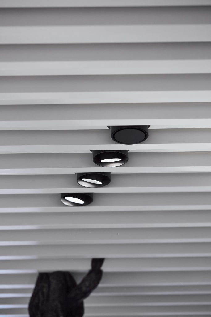 Downlight is one of the most important light sources of a pavilion, especially tall pavilions. Downlight provides a great overall lighting and can be controlled with a dimmable lighting solution, which makes it possible to create rooms within the room. Furthermore, downlights also help create a more natural light, and a natural flow between the various areas of the pavilion.