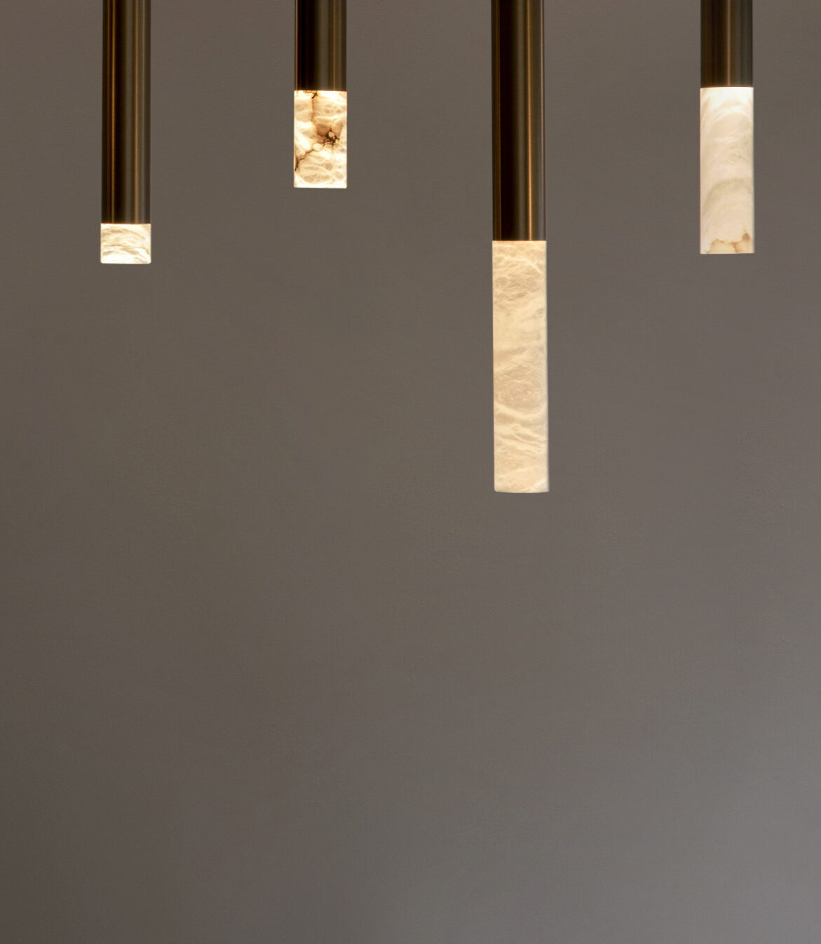 The collection consists of two main components, respectively in aluminium and alabaster, both available in different lengths.