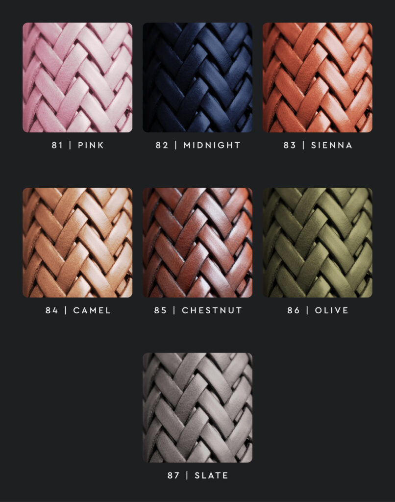 The Braided Leather detail is offered in seven exclusive leather colours, curated to enrich a wide range of interior expressions – from soft naturals to bold, characterful tones: