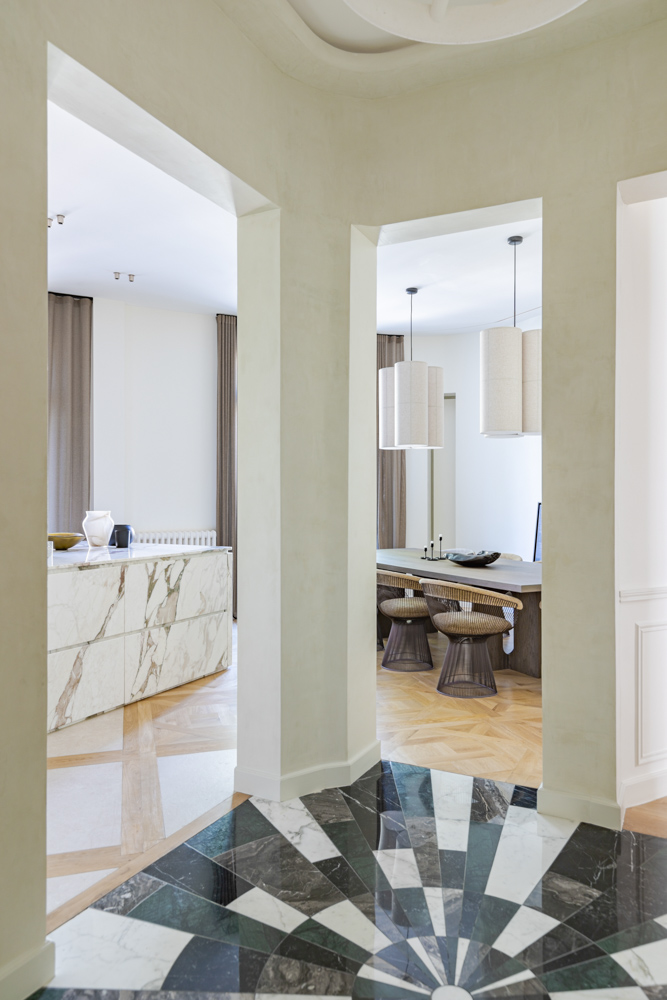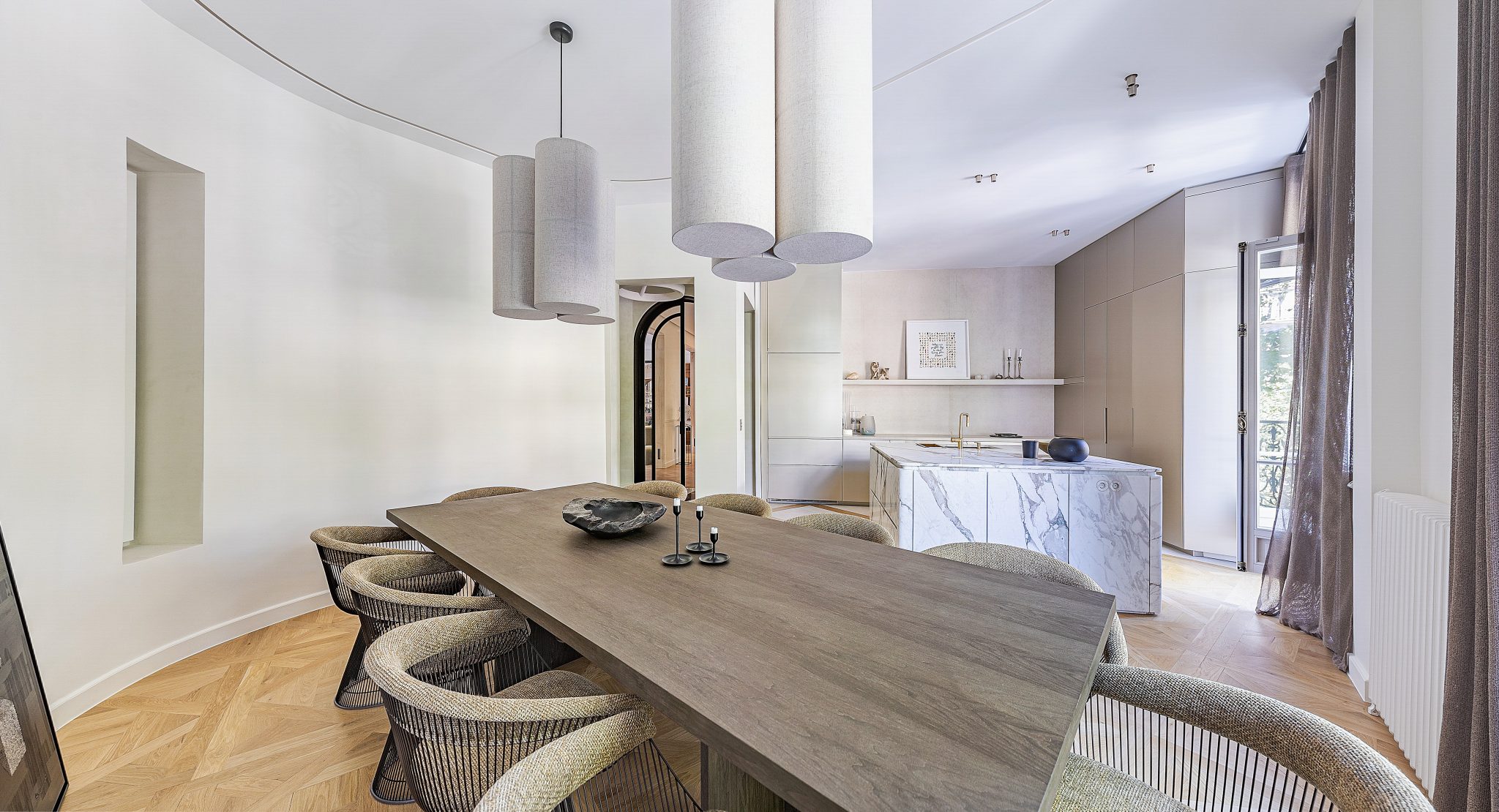 On the historic street of Paris – Avenue Rapp, Kelly Boukobza and LUNE Eclairage have realized this amazing project. The Haussmannian-inspired architecture lives all around this beautiful residence.