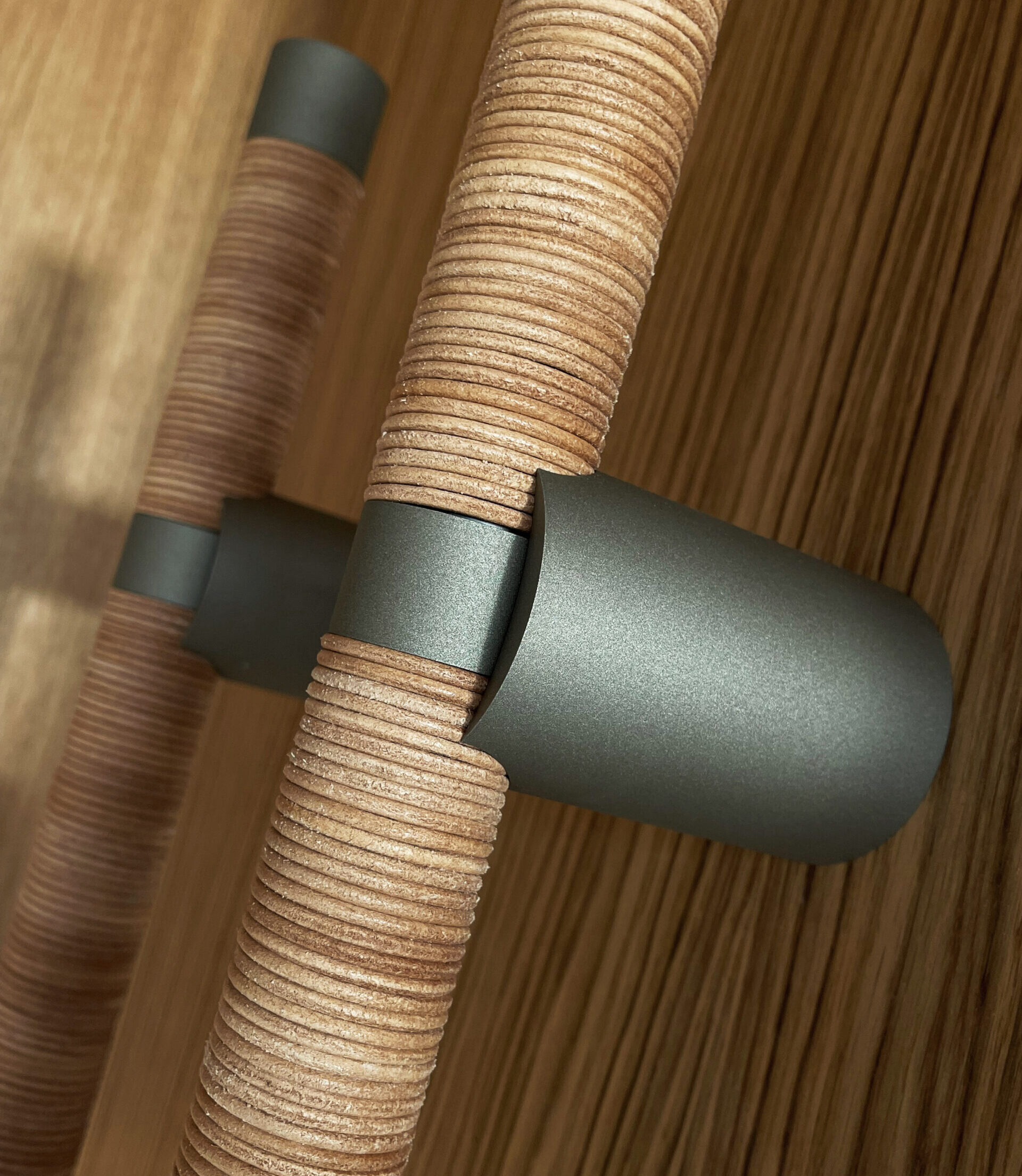 The LW L lamp offers various customization options, with a broad range of colour choices for both the aluminium cylinder and the leather cover.