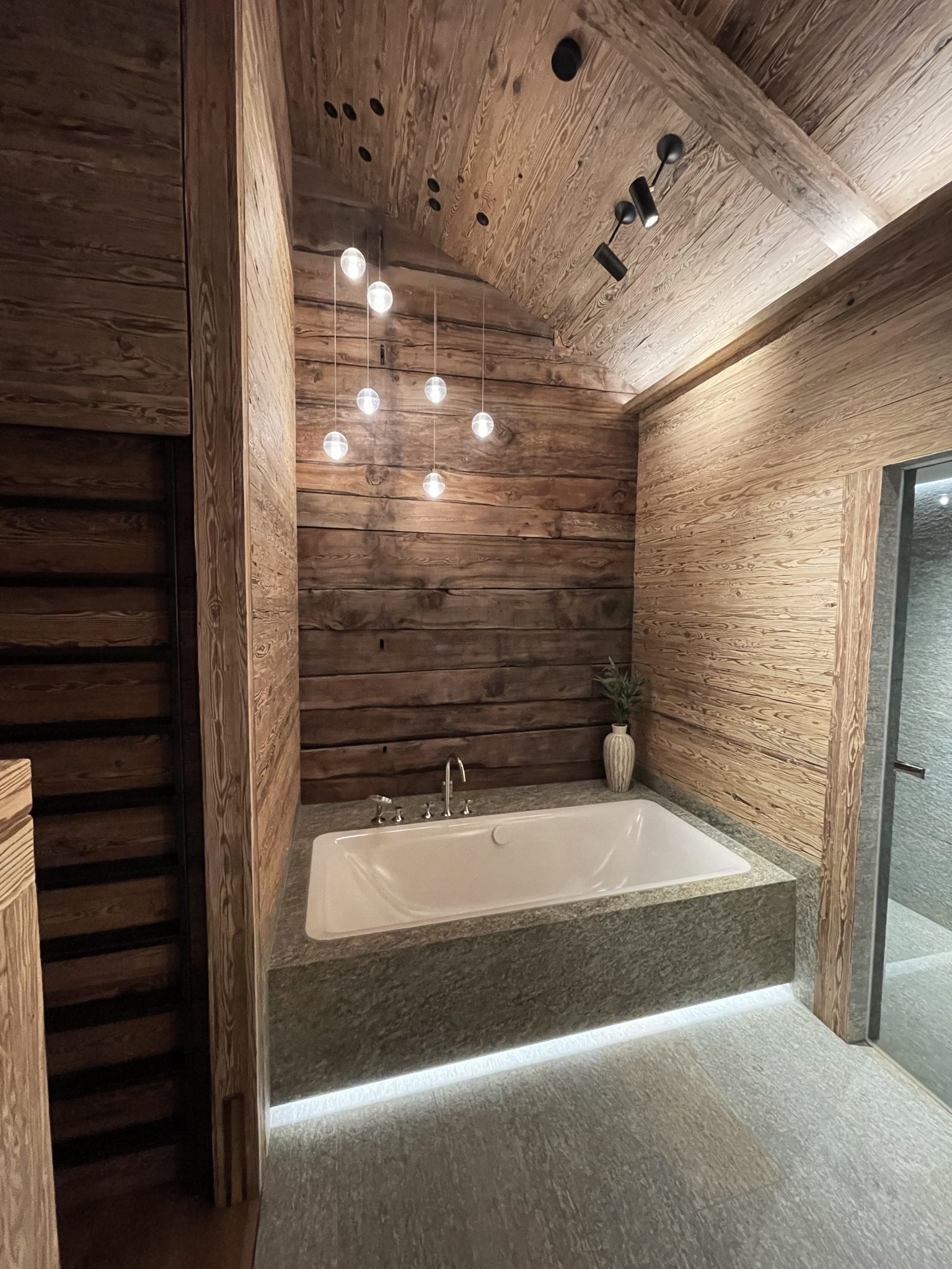 Surrounded by the beautiful swiss alps in the heart of Saas-Fee you will find this beautiful, fully restored lighting project by LEGIO “The Mountain House”.
