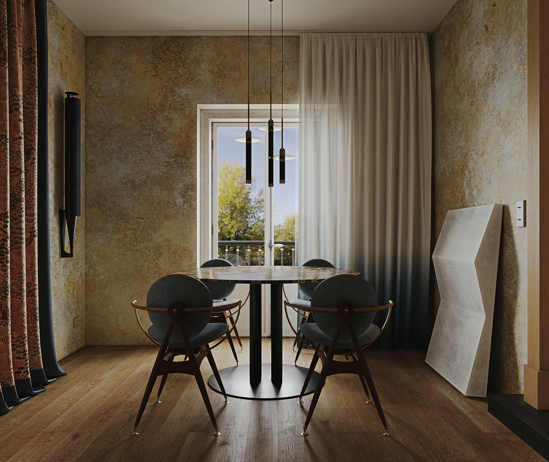 A mix and match of Danish design classics and new custom solutions. A tribute to what once where and now what is, the design team found great inspiration from the Danish painter Ebba Nina Beck Carstensen, while constantly seeking contrasting materials, styles etc. which lets the viewer join a thrilling journey throughout the different rooms.