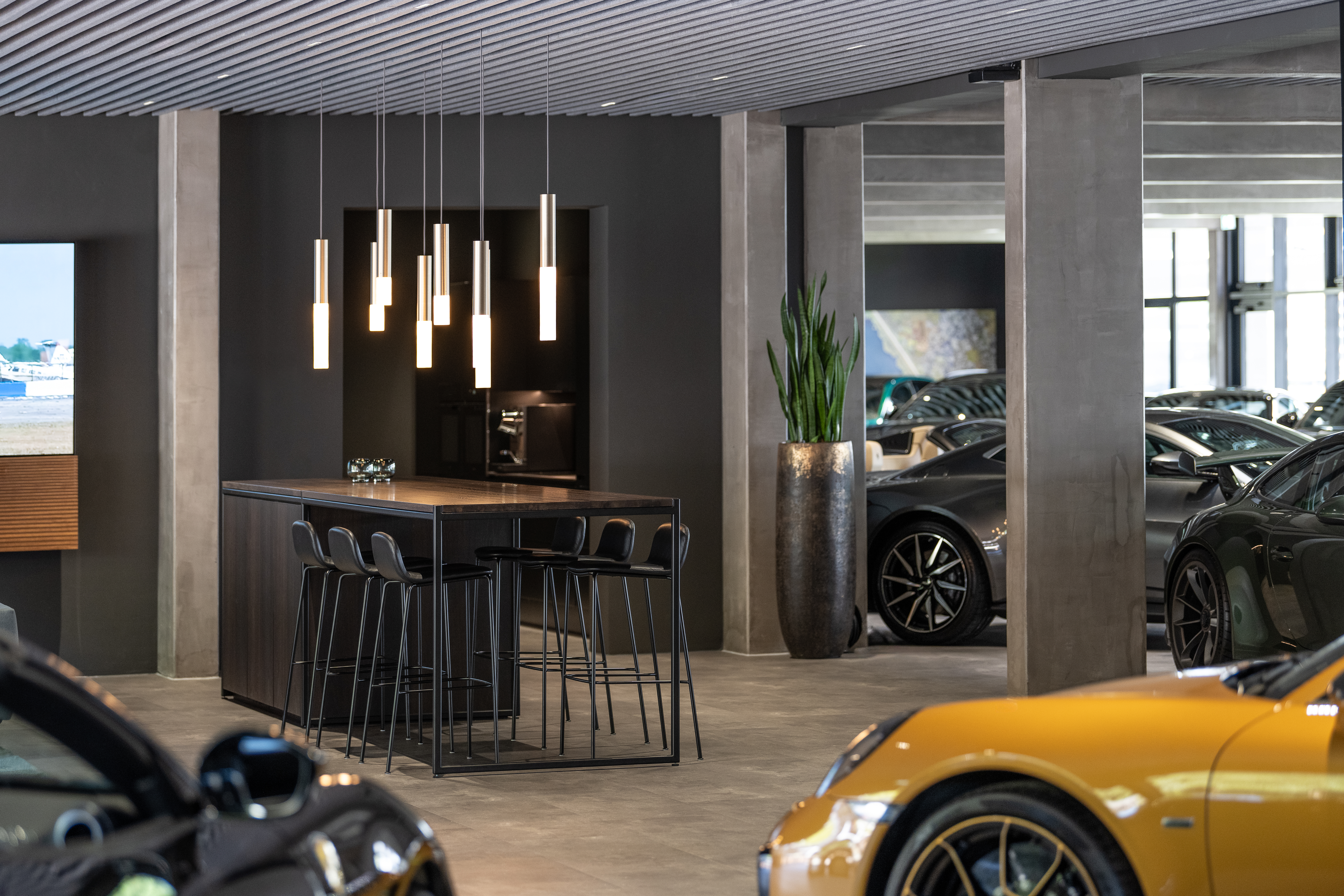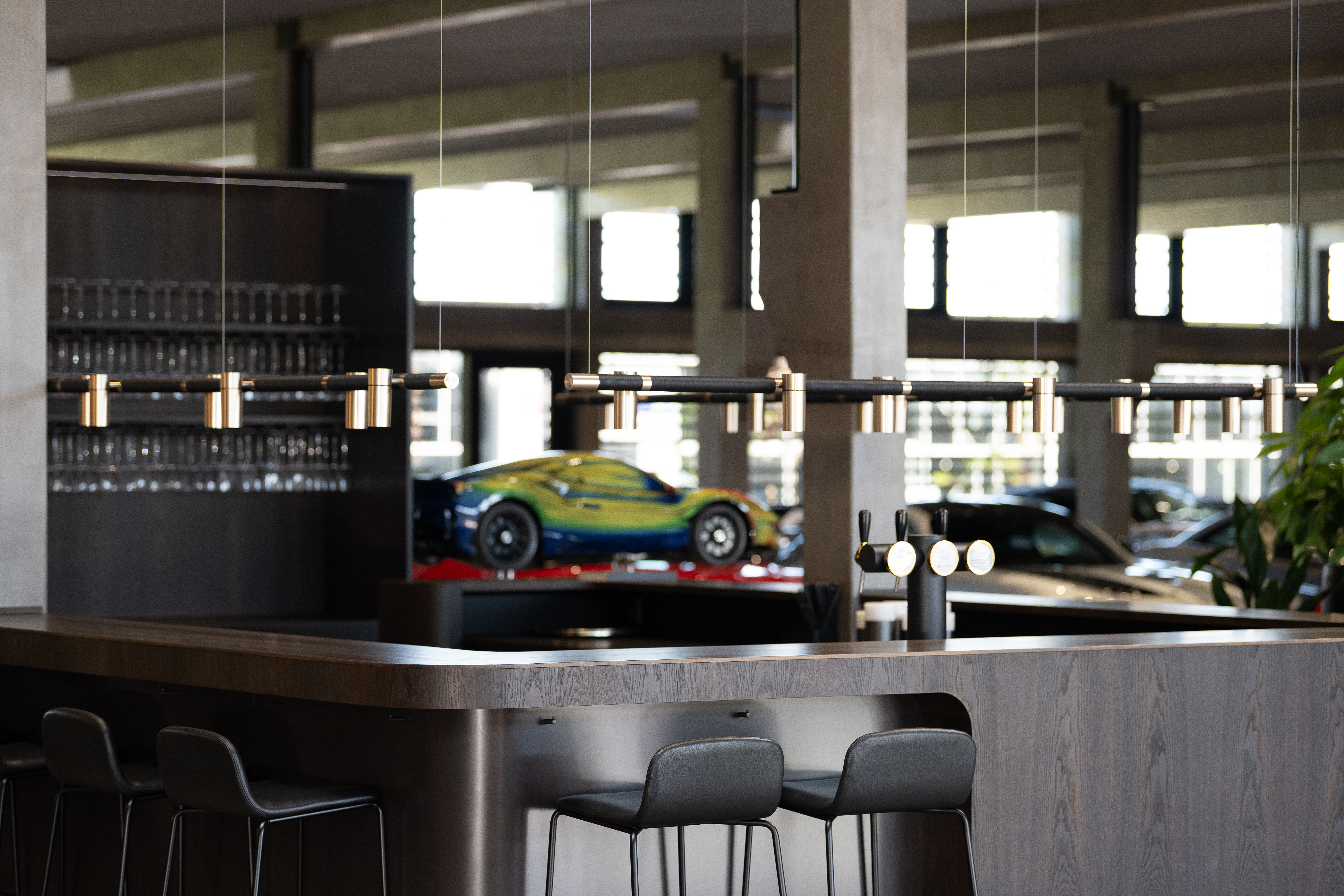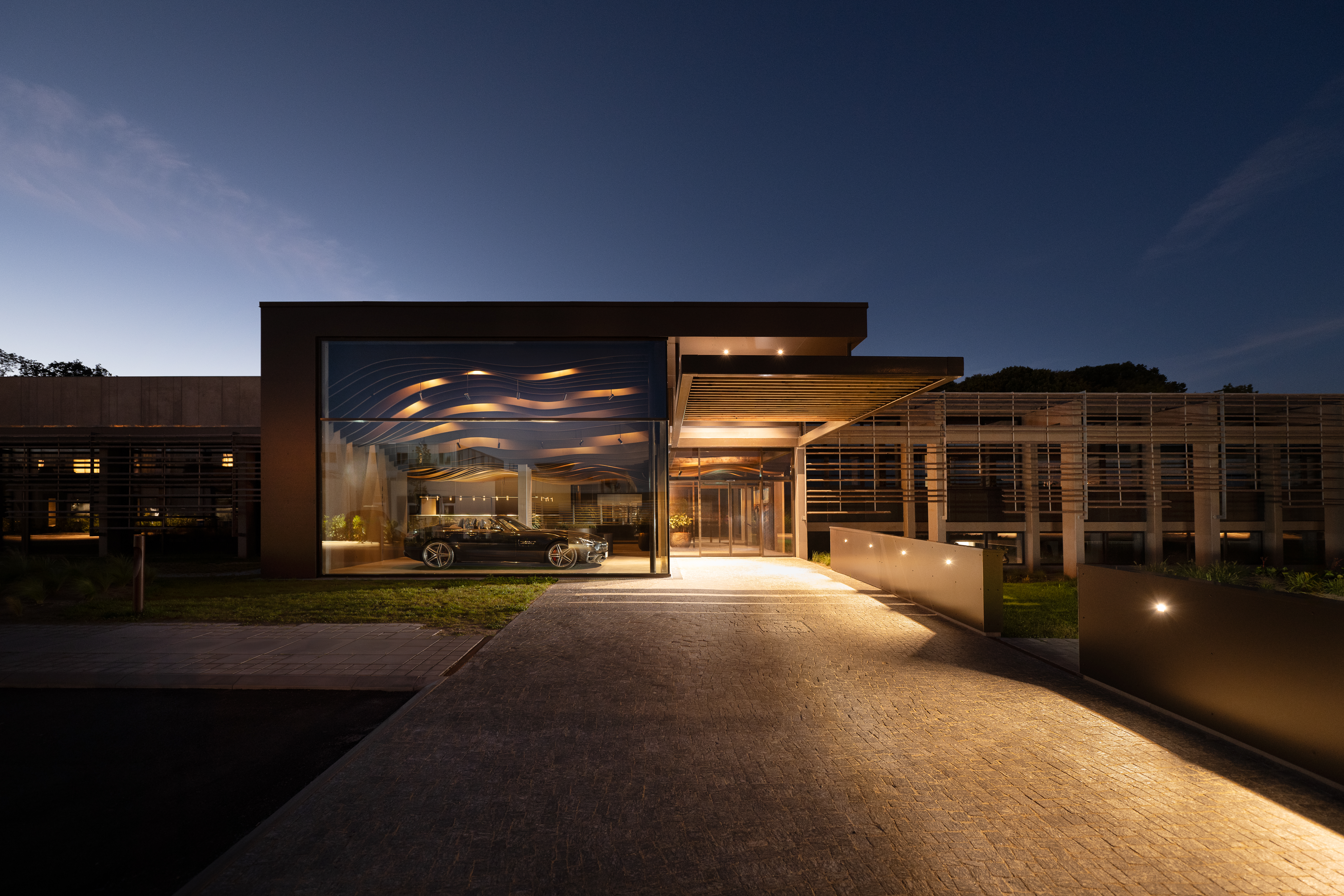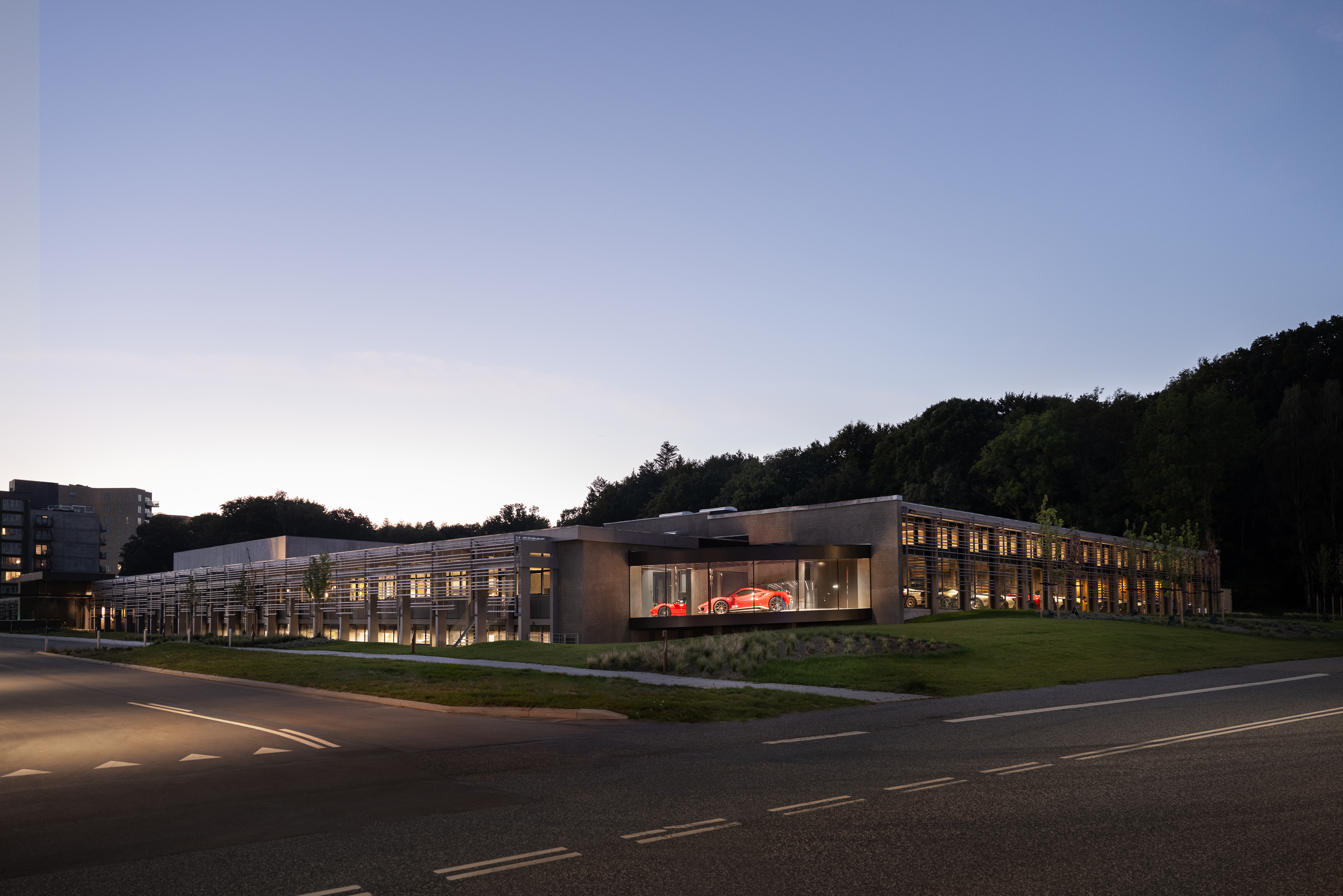 Discover the transformation of a former technical training center into Denmark’s most prestigious car club. This 12,000 m2 hybrid house not only surrounds you with an extraordinary car experience, but also includes a padel center, training facilities, a luxurious pool area, inviting lounge spaces, and dedicated meeting facilities for members.