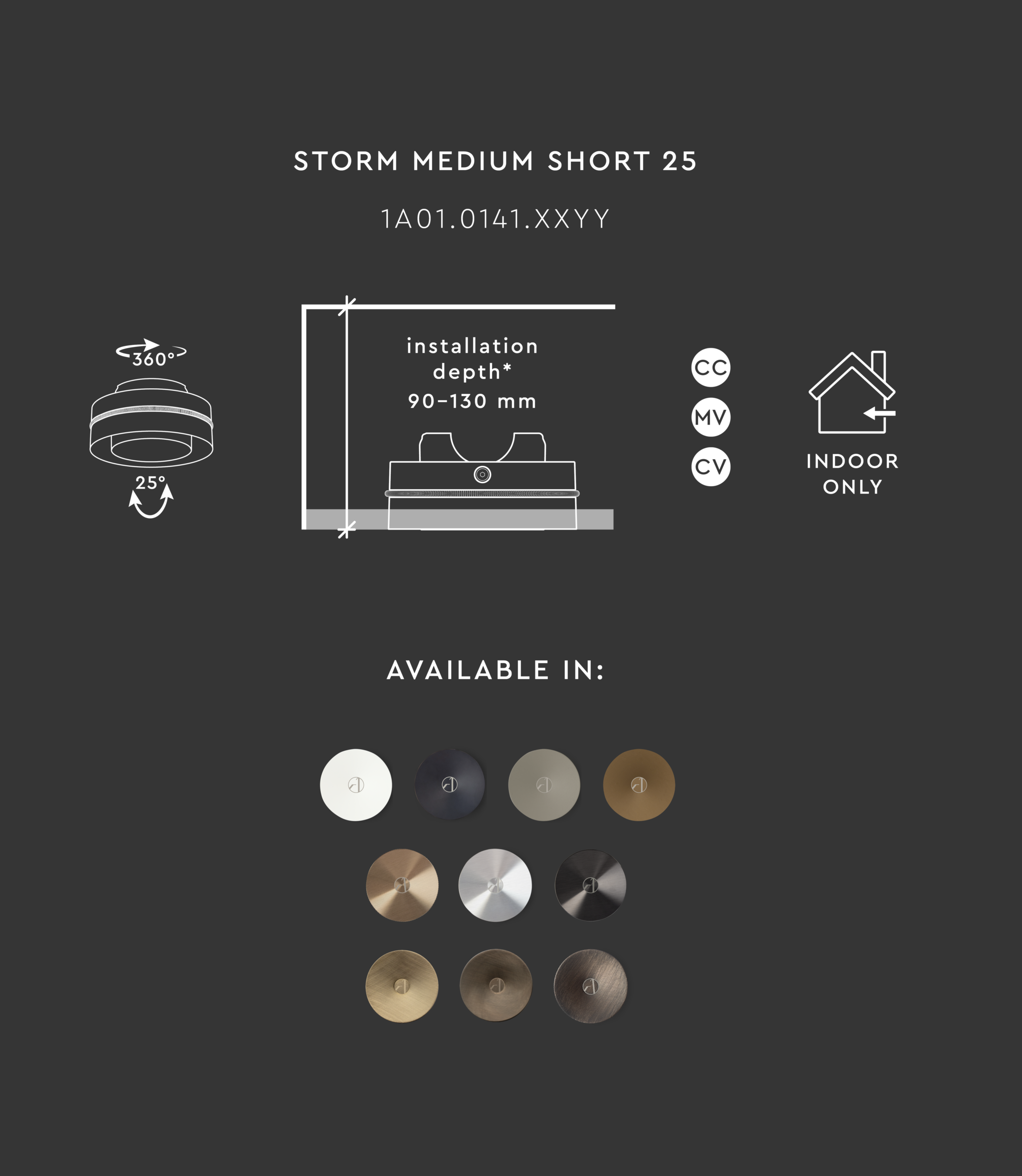 Storm Medium Short 25 is designed to rotate 360° and allows a 25° adjustment along the longitudinal axis. It is available in a variation of different colour combinations.
