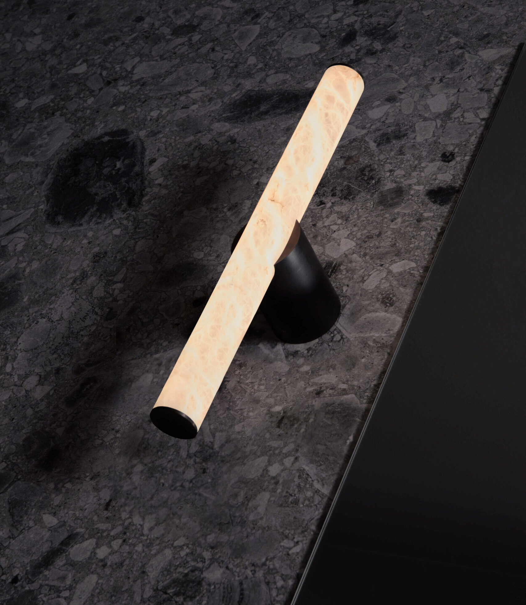AW400T is a wall-mounted lamp that measures 400 mm in length. LEDs inside the alabaster tube ensures that a homogeneous and continuous light is emitted throughout the stone.