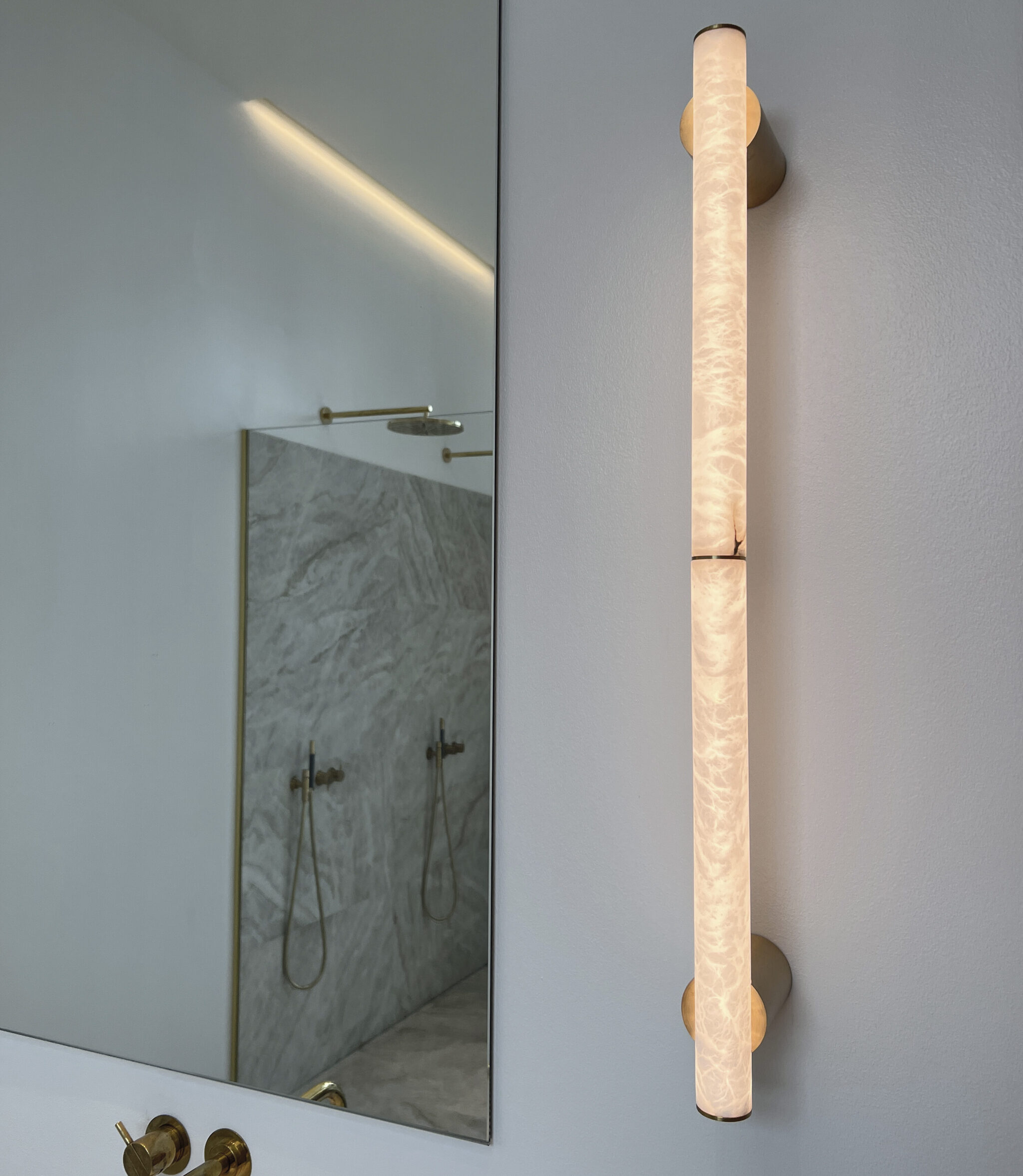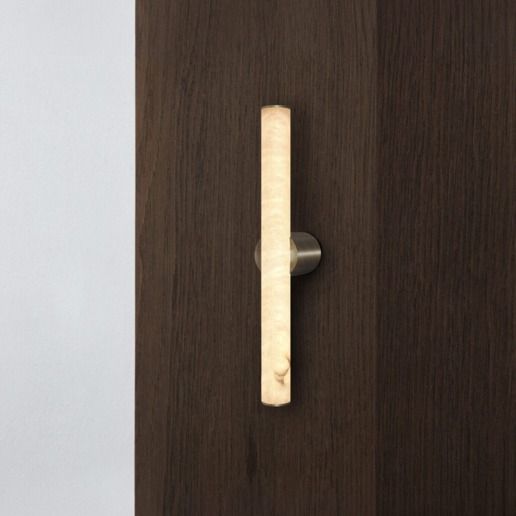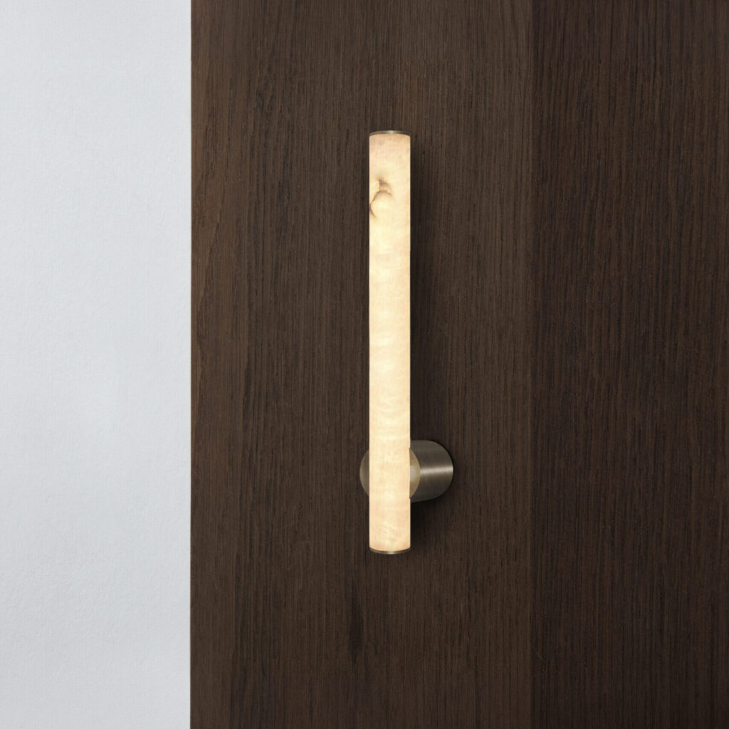 AW800 is a wall mounted lamp that measures 800 mm in length. LEDs inside the alabaster tube, ensures that a homogeneous and continuous light is emitted throughout the stone.